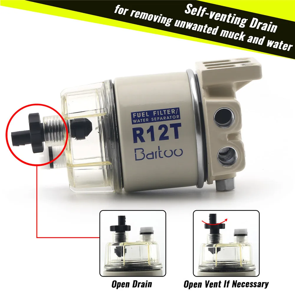 10 Micron R12T Boat Marine Rotation Oil Fuel Filter Water Separator fr Speedboat
