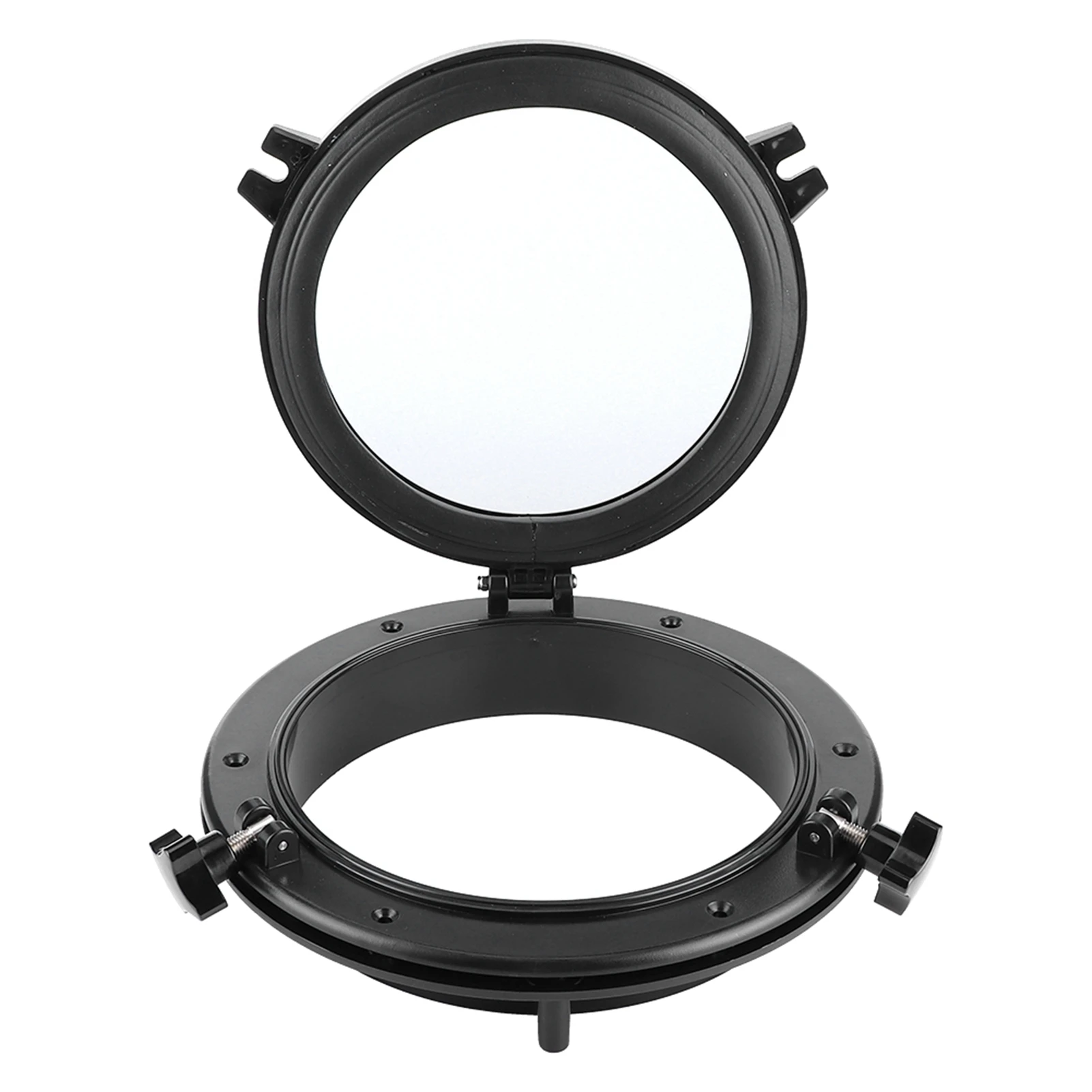 | Features | 1、4mm/0.2in thick tempered glass, rugged and durable, not easy to damage. 2、Reserved mounting holes (without screws), easy to install, simple and convenient to use. 3、Contains durable rubber ring seals for strong sealing, effective waterproof, reliable to use. 4、The two fittings can be loosened to allow you to swing open the porthole. 5、Casted and polished 316 stainless steel accessories, corrosion free synthetic fittings. 6、Made of high‑quality ABS material, anti‑aging and anti‑ultraviolet, suitable for boat environment. |