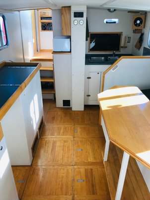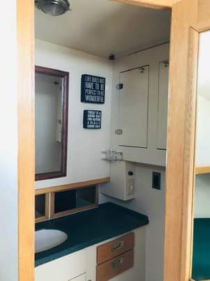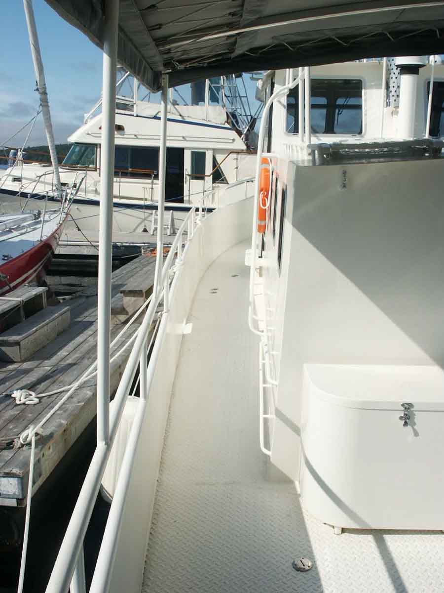This Wray Brown custom vessel was first commissioned in 1985 in Ontario Canada, she underwent a complete rebuild in 2006. She is powered by a remanufactured Caterpillar 210HP diesel engine installed in 2006.The rear awning fully protects the aft deck from the elements and gives way to a drop down swim/dive platform for easy water access. The extra wide side decks make maneuvering about the boat a breeze! The galley is complete with a a two burner, gimble mounted stove/oven, a double stainless sink, top loading fridge/freezer and a microwave. The instruments include Radar, Depth Sounder, VHF, Auto Pilot and GPS/Plotter. The 6 person Solas “A” pack offshore rated life raft is fitted with a new EPIRB both new in 2018. This multi purpose vessel is ready to fill your needs.