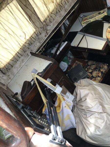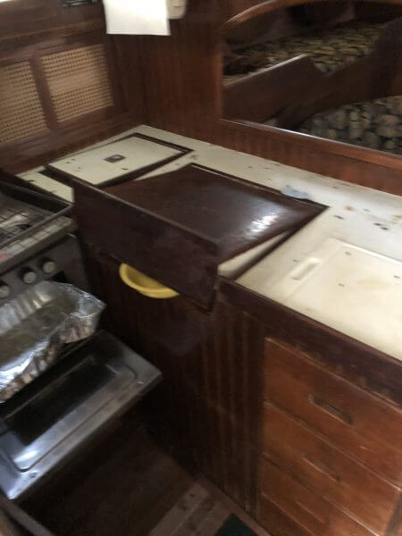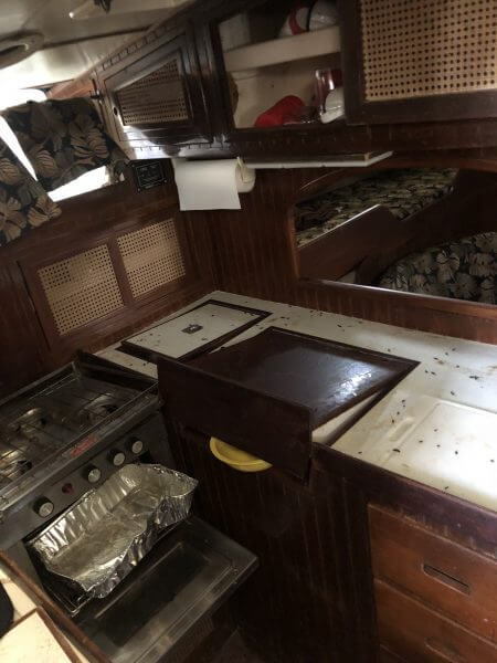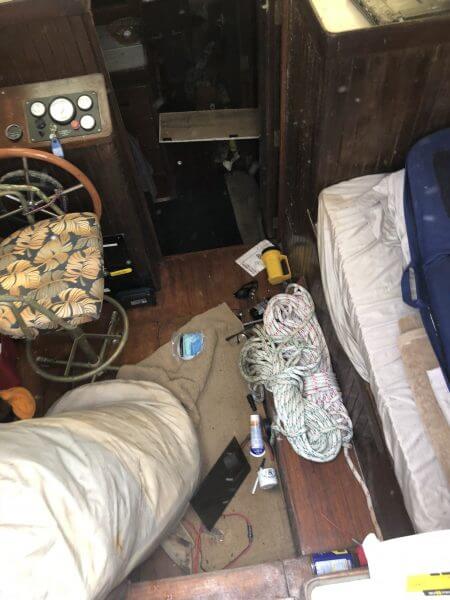 Vessel was knocked off stands during Hurricane Irma and rain Water floated the interior. Vessel has extensive mold in the interior. Vessel can stay for long term storage at the buyers expense in the yard after purchase or launched.