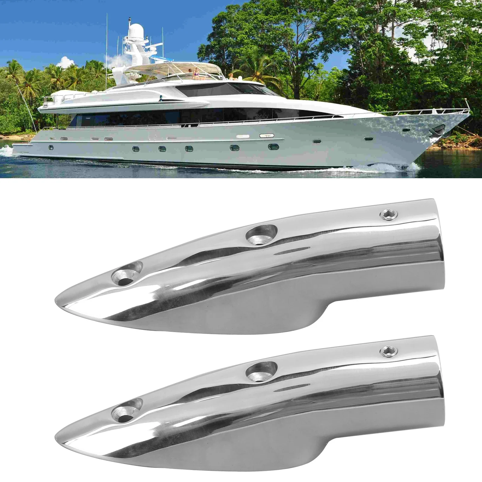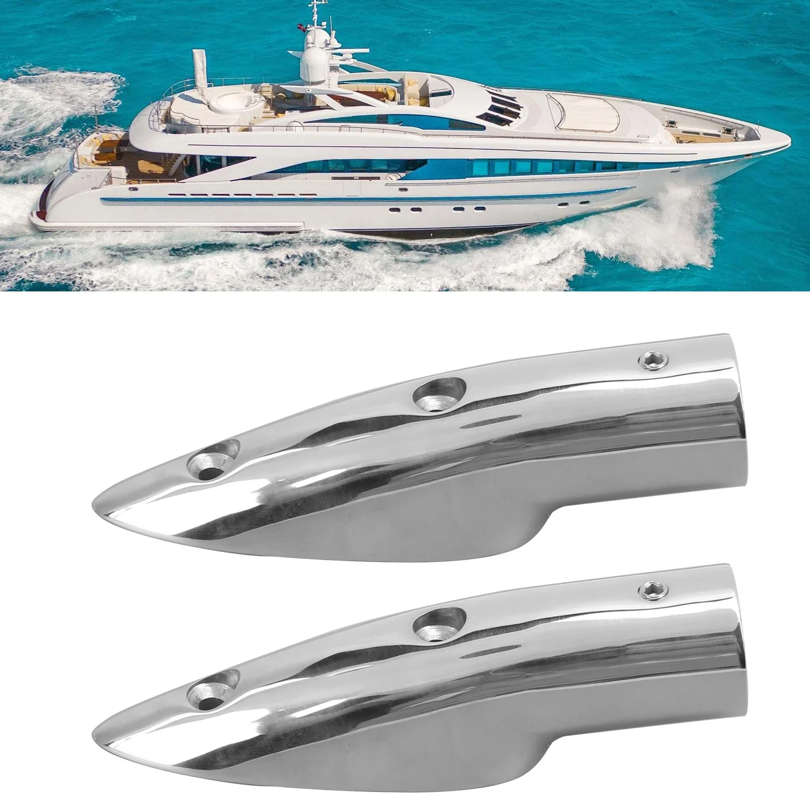 | Features | 1、Boat handrail end with 7/8in inner diameter, allows 7/8in tube slide into it, practical to use. 2、Marine grade 316 stainless steel, with maximum corrosion resistance and durability in saltwater environment. 3、Simple and fast installation, no need of complicated drilling or welding, save your time and effort. 4、Direct replacement for the old or damaged handrail end, no additional adjustments are required. 5、Wide range of applications, perfect hardware for sailboat and powerboat railings. |