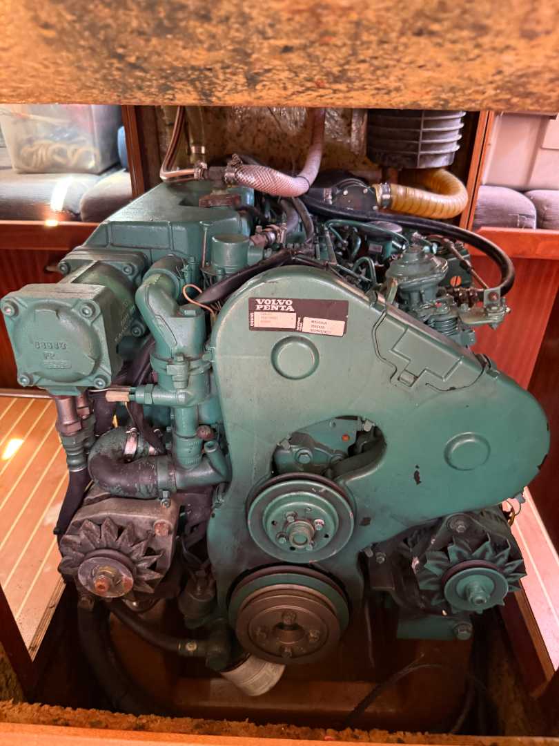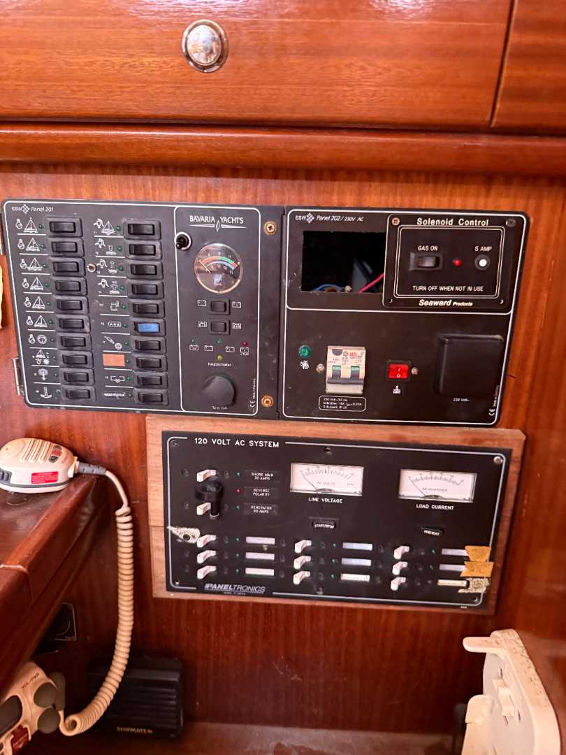 “Second Wind” is a 2003 Bavaria 49 built in Giebelstadt, Bavaria, Germany. The yacht has the popular three‑cabin / three‑head “owner’s” layout and features a comfortable saloon with a settee and dining table. Bavaria’s renowned build quality is evident in her solid fiberglass hull and balanced fin‑and‑skeg rudder; she has a length overall of roughly 49 ft 7 in with a 14 ft 6 in beam and 6 ft 9 in draft. A Volvo Penta TMD 22 diesel engine (approx. 76.9 hp) provides economical auxiliary power, and the yacht carries about 180 US gal of diesel and 121 US gal of fresh water in two tanks each.