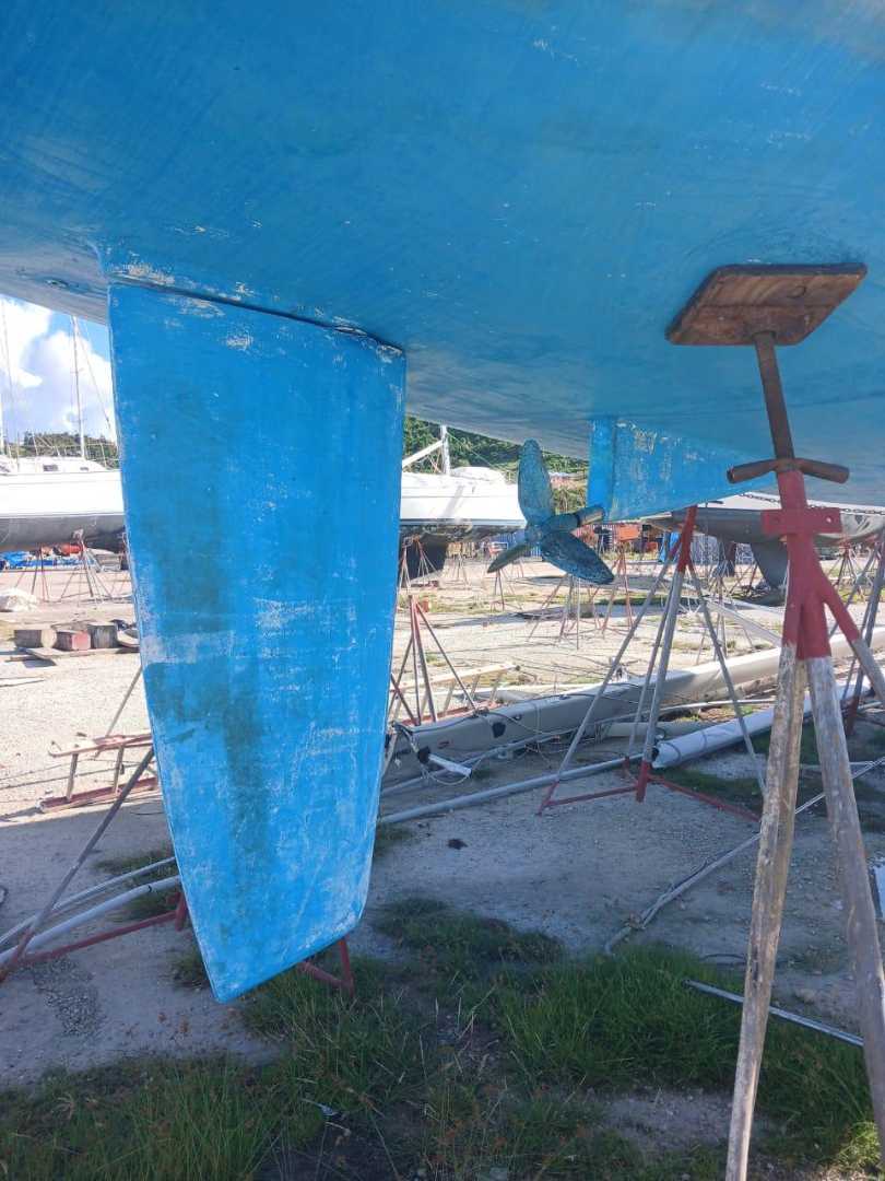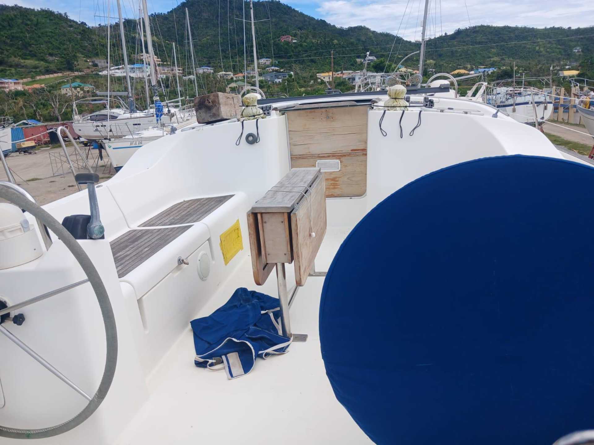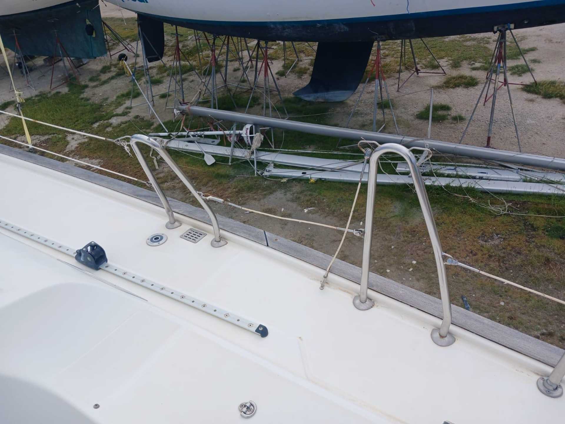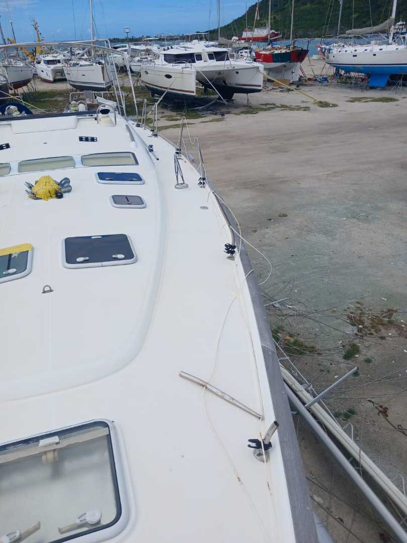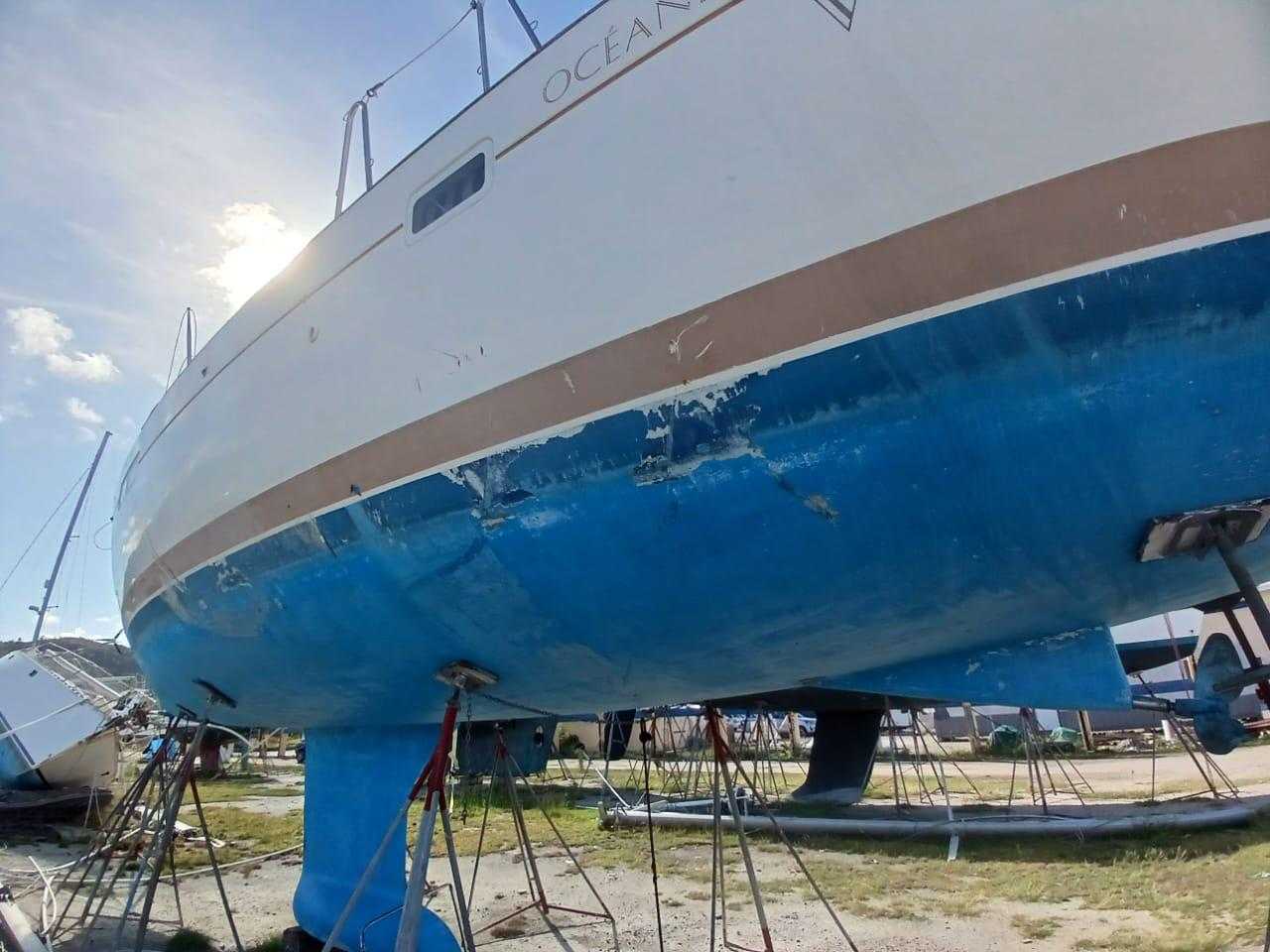 - Condition Note: The furler and mast are beside the boat; the vessel fell off its stands during a storm.
