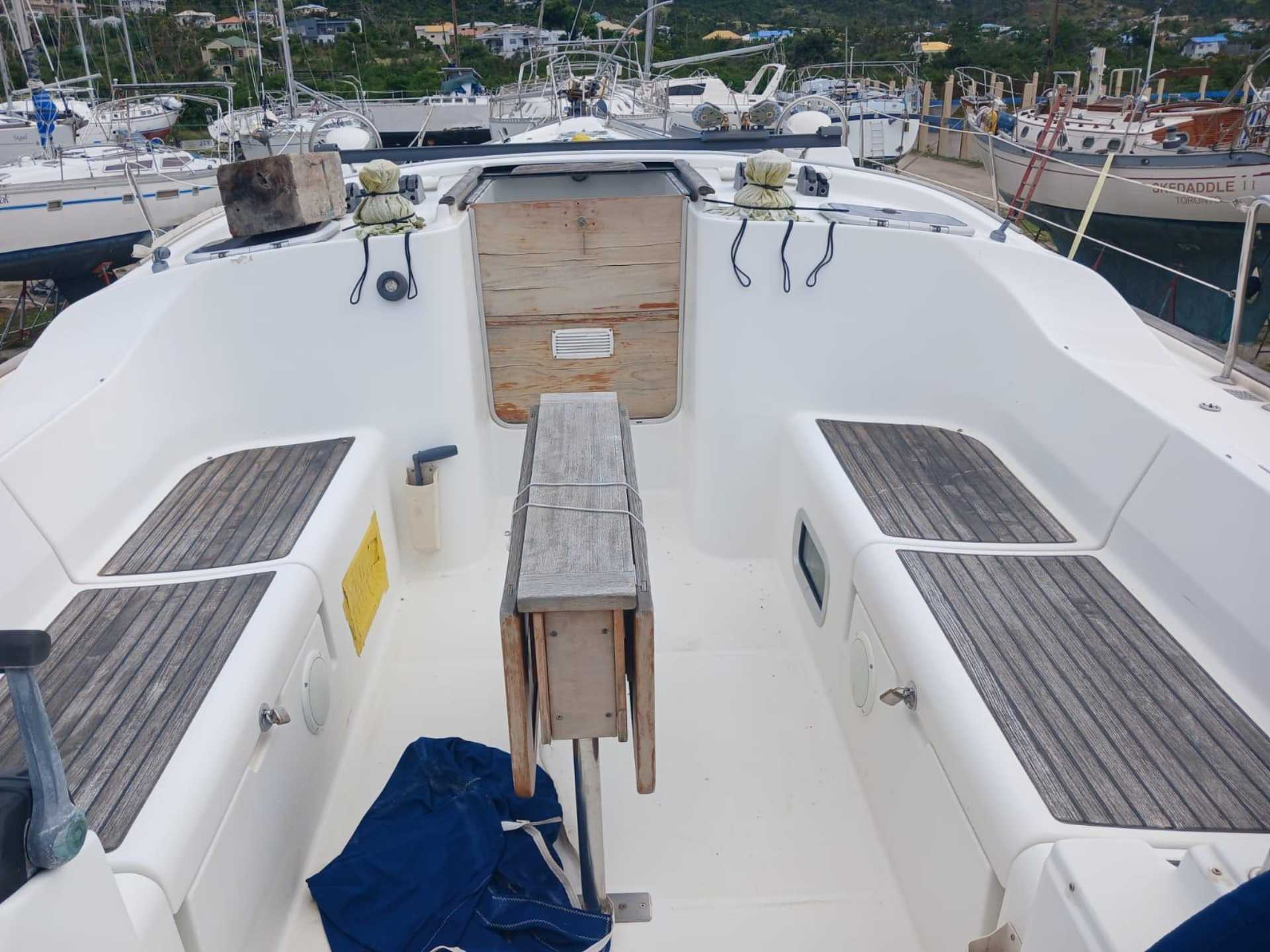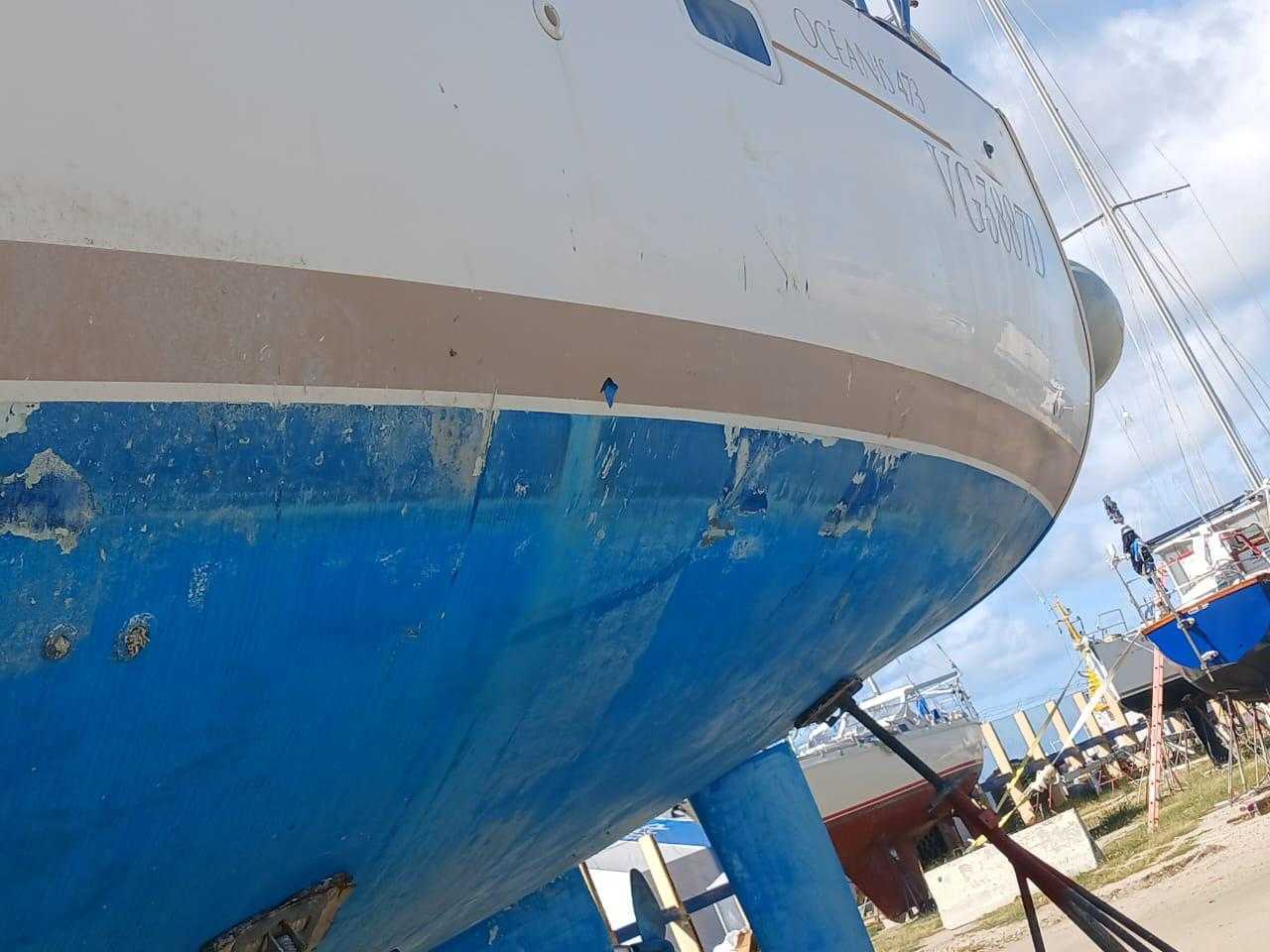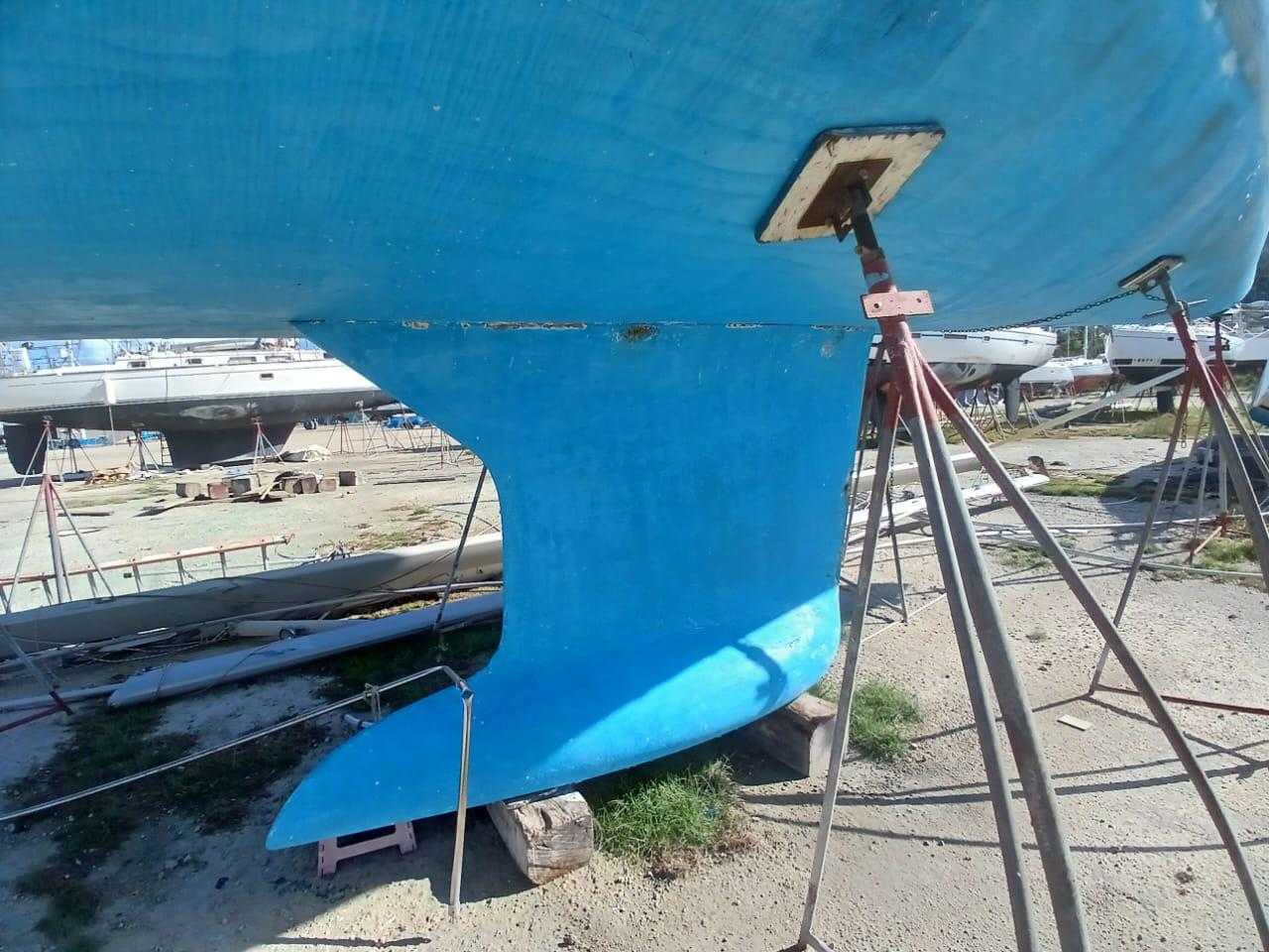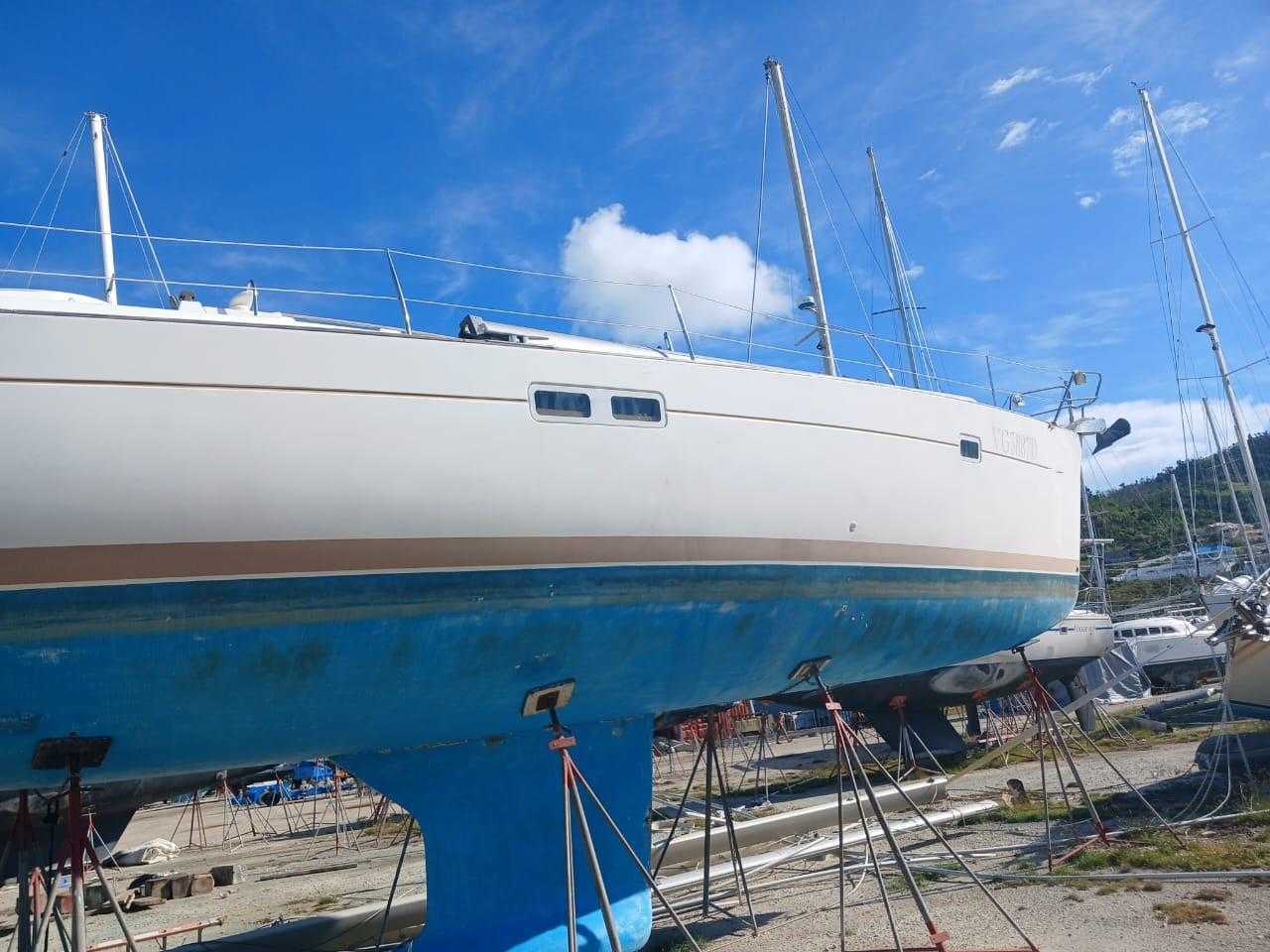 - Condition Note: The furler and mast are beside the boat; the vessel fell off its stands during a storm.