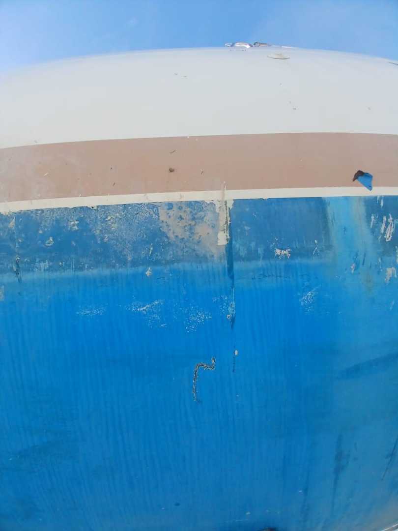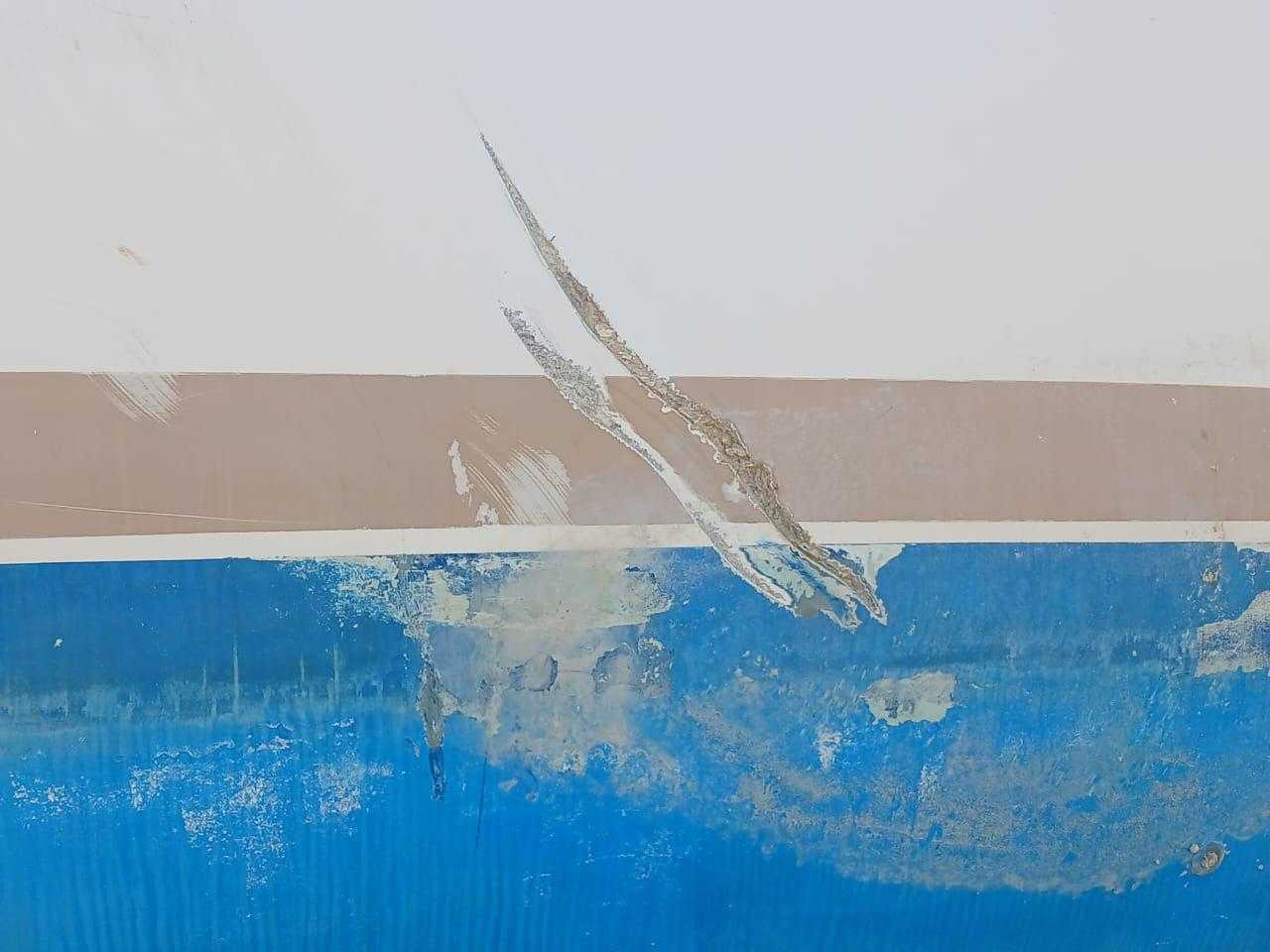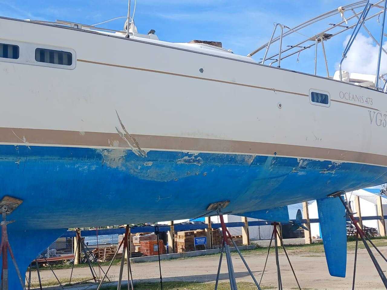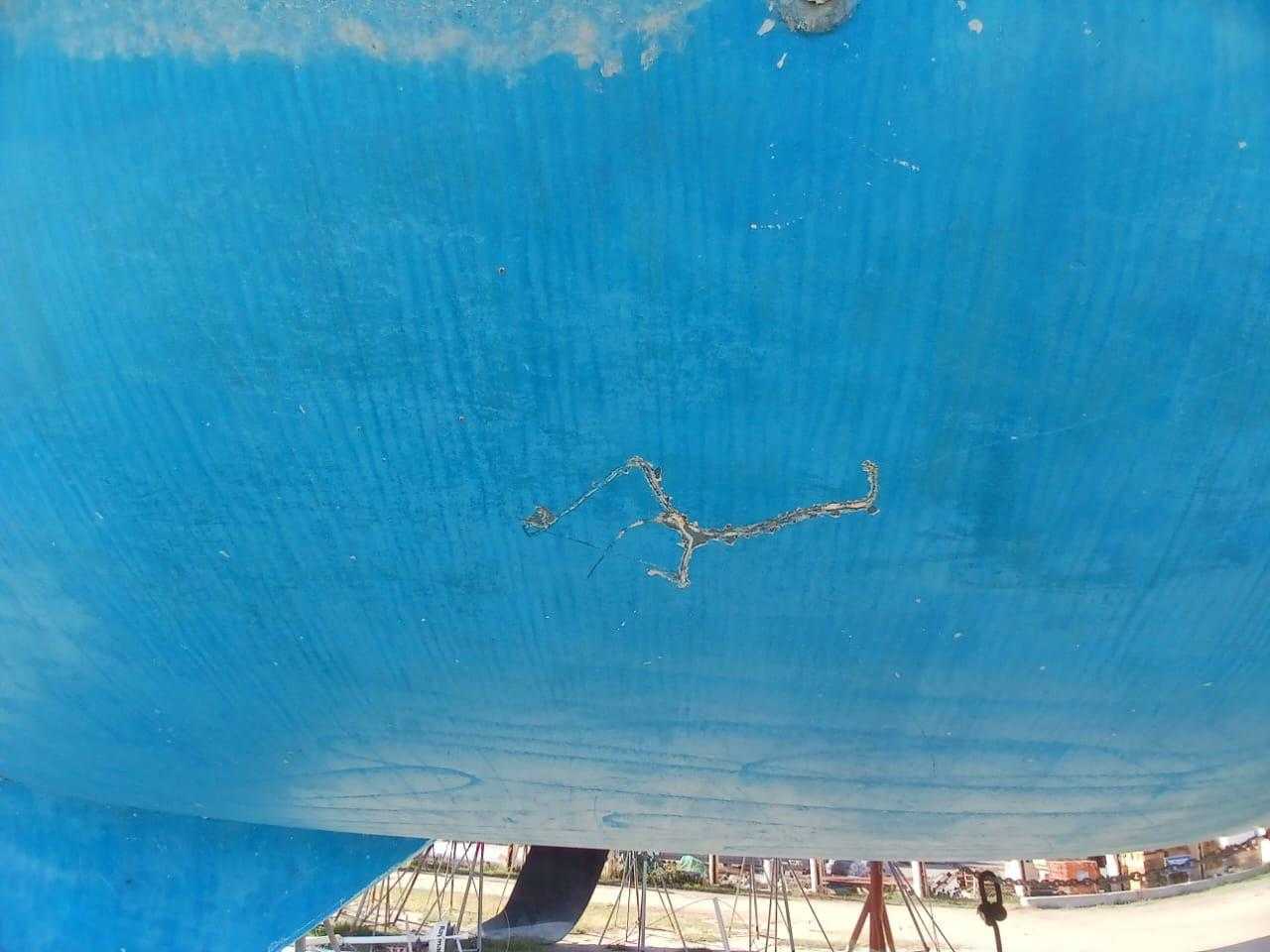 Minor damage all over. Scratch where it landed on the side. Scratch next to the keel where the jack stand scraped along. Mechanical, electrical and interior not damaged.