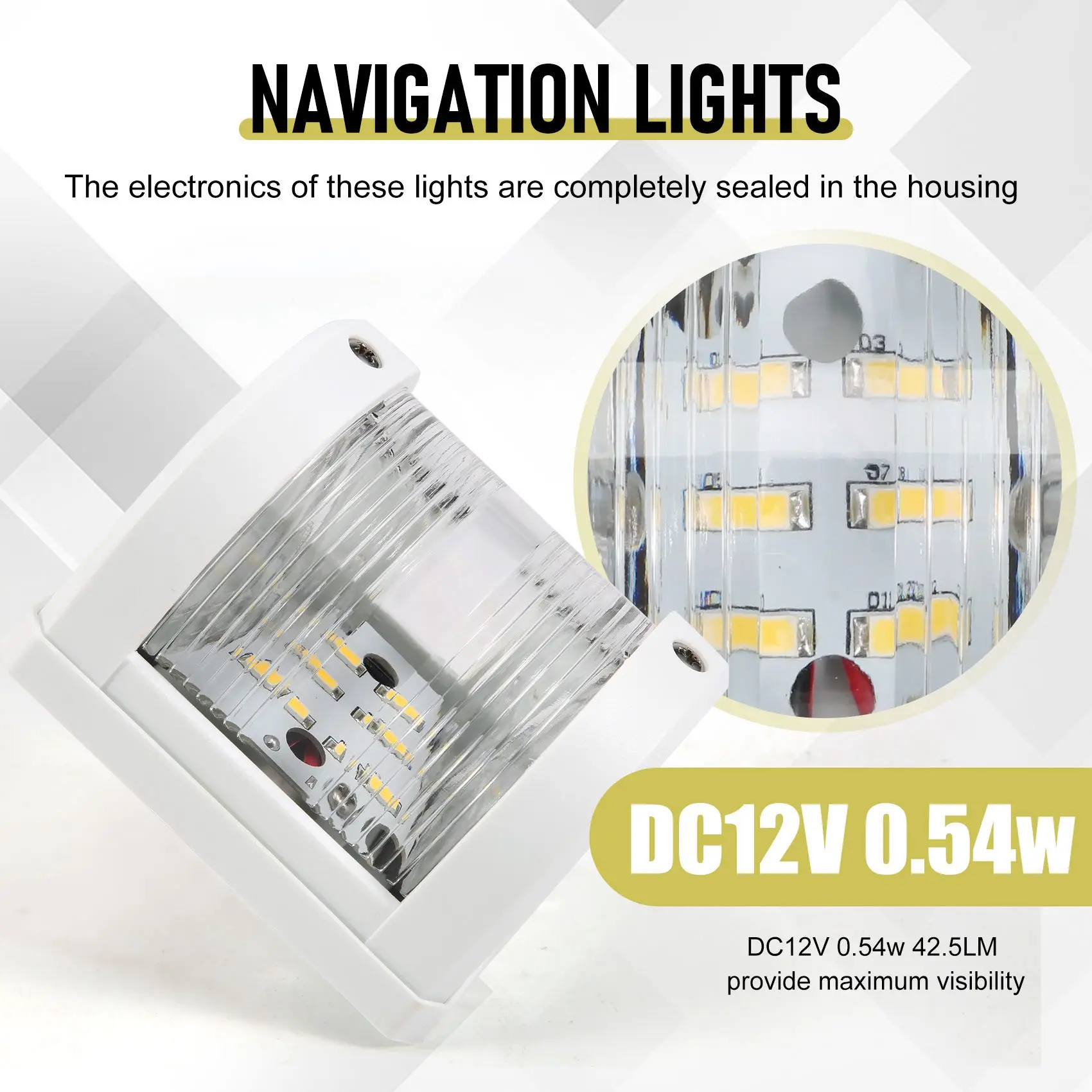 DC12V 0.54w 42.5LM provide maximum visibility, up to 2 nautical miles.