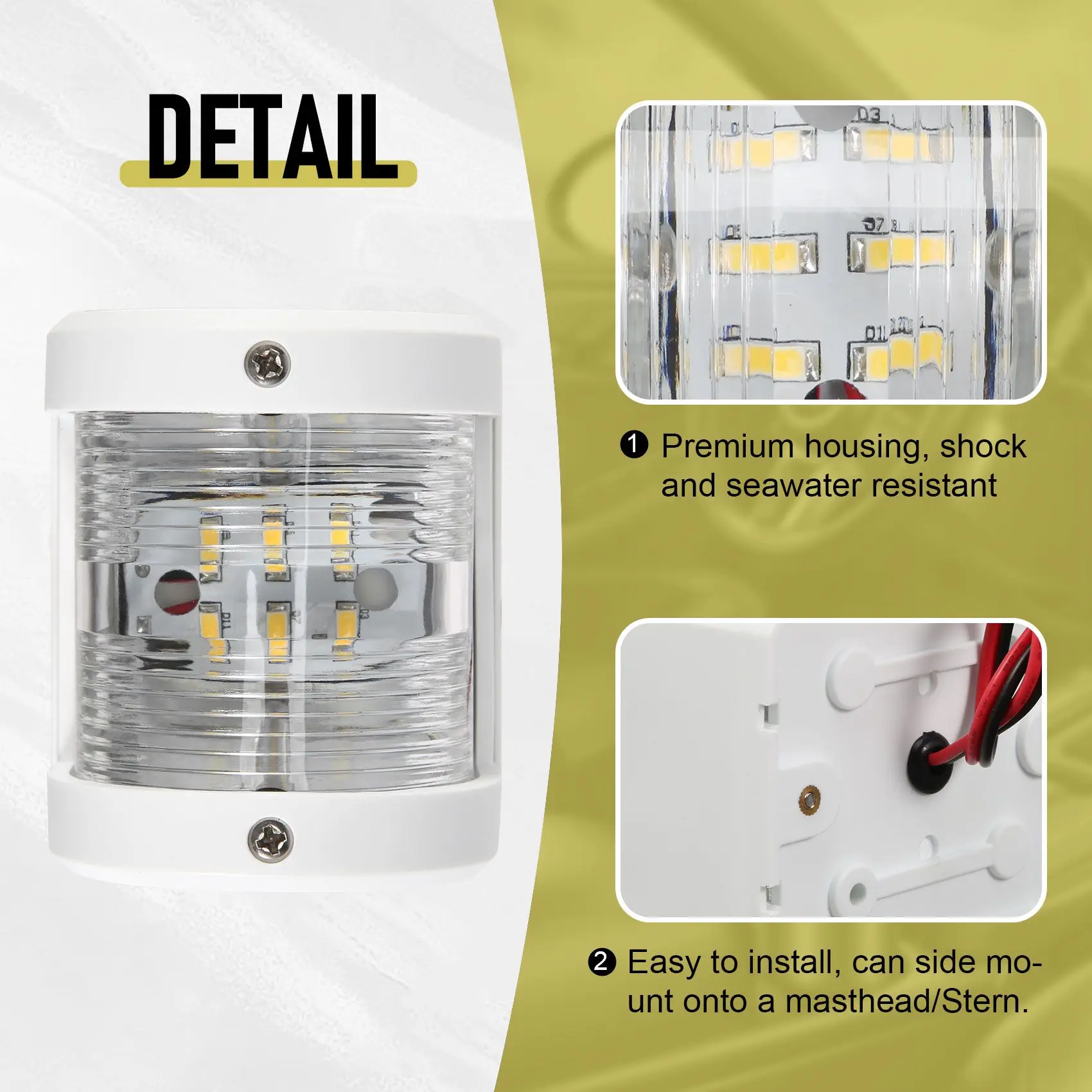 Boat 12V Navigation Lights White Stern Light Marine Safe Night Sailing Signal Lamp For Fishing Boat Yacht Pontoon