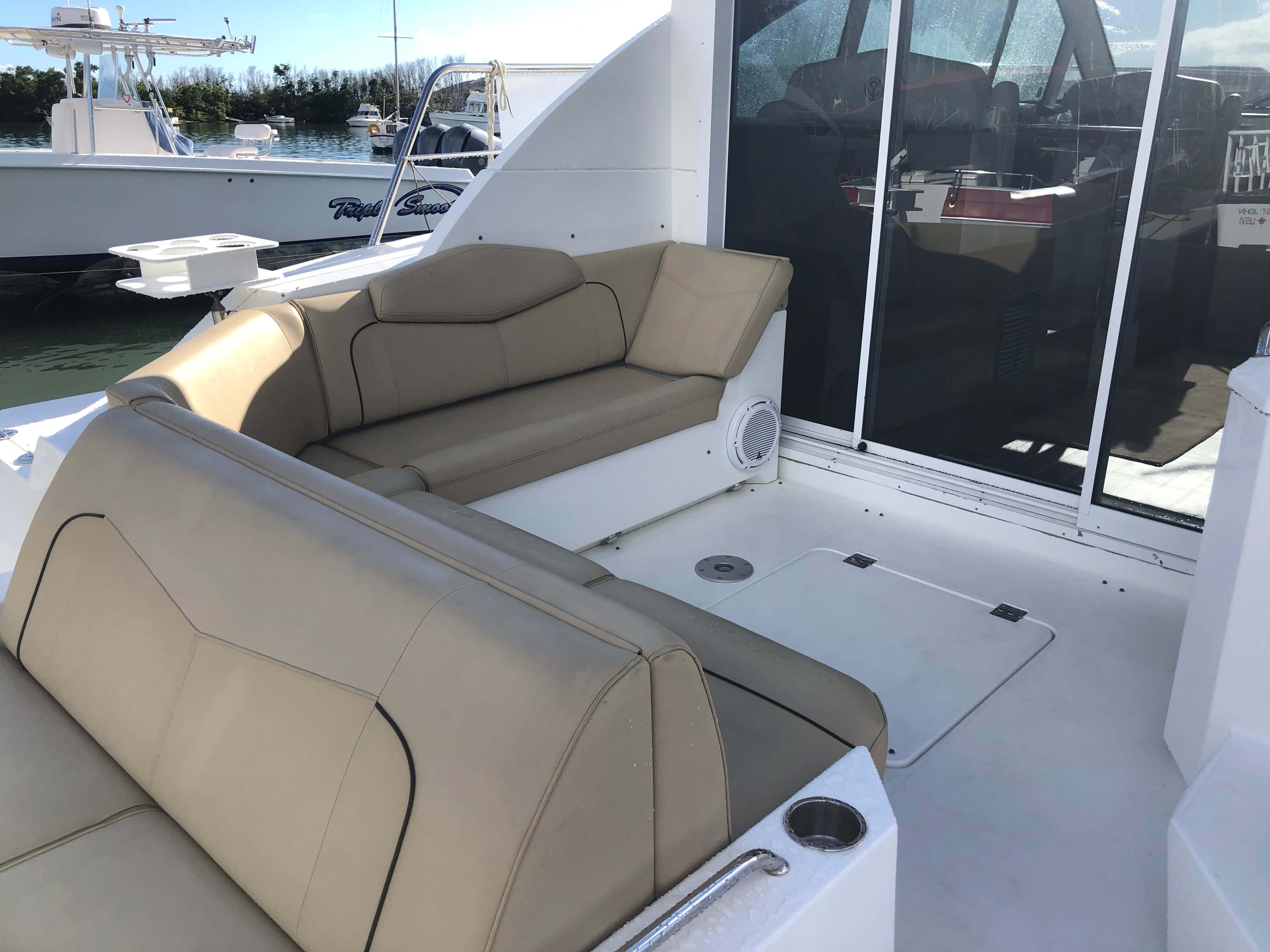 Private owner, not chartered. Low engine and generator hours. Both have been tested and are in working order. Garmin GPS, JL and Sony stereo system, Moon Roof, two cabins, TVs throughout the vessel, satellite, front deck lounge area, bow thruster, galley, fridge, stove, cooktop, AC throughout, electric BBQ, fuel polishing system, extra batteries (all new), mood lighting and much, much more.