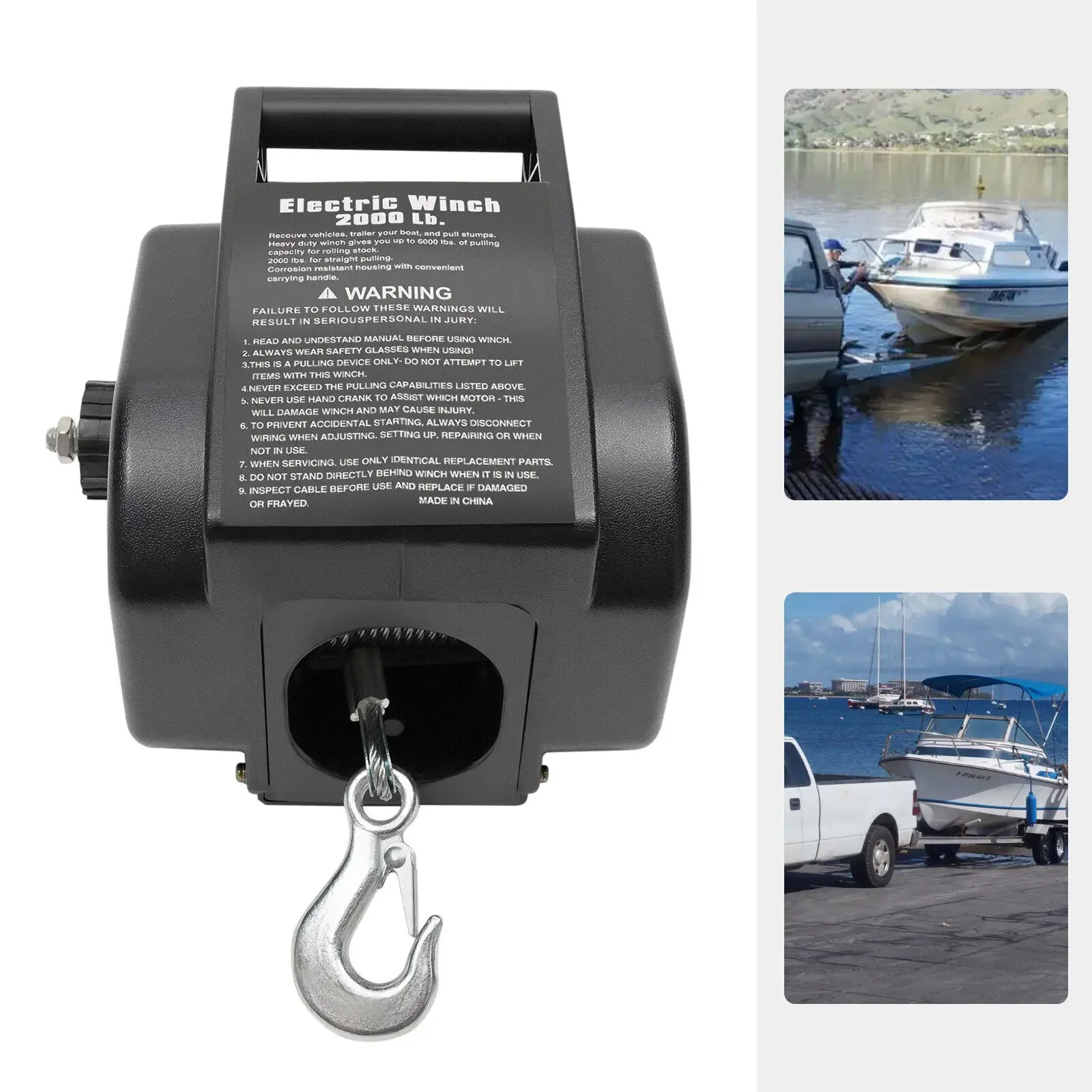 Electric 2000 LBS Boat Winch – Reversible Marine Trailer Winch with Remote Control for Easy Operation
