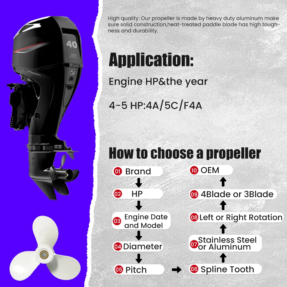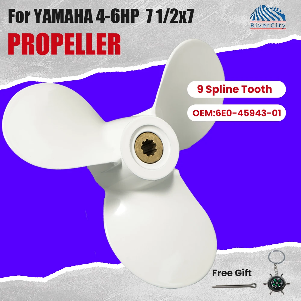 For Yamaha 4HP 5HP Outboard Propeller 7 1/2x7 Boat Motor 9 Spline Aluminum Alloy Screw Ship Marine Engine 3 Blade 4A/5C/F4A