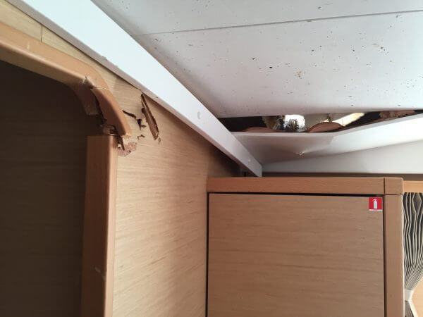 Cabin 3: Lightly Damaged | Some compression damage in the corner of the cabin door and room