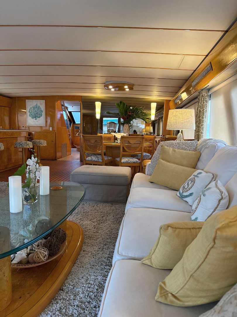 Offered at $990,000, Suite Life is a beautifully maintained 92′ Tarrab motor yacht, originally built in 1998 and continuously upgraded through 2025. Her solid fiberglass hull, 22′ beam, and expansive tri-deck layout make her feel like a 110-footer in volume. Whether you’re looking for a private luxury cruiser or an operational charter platform, Suite Life is ready to go.