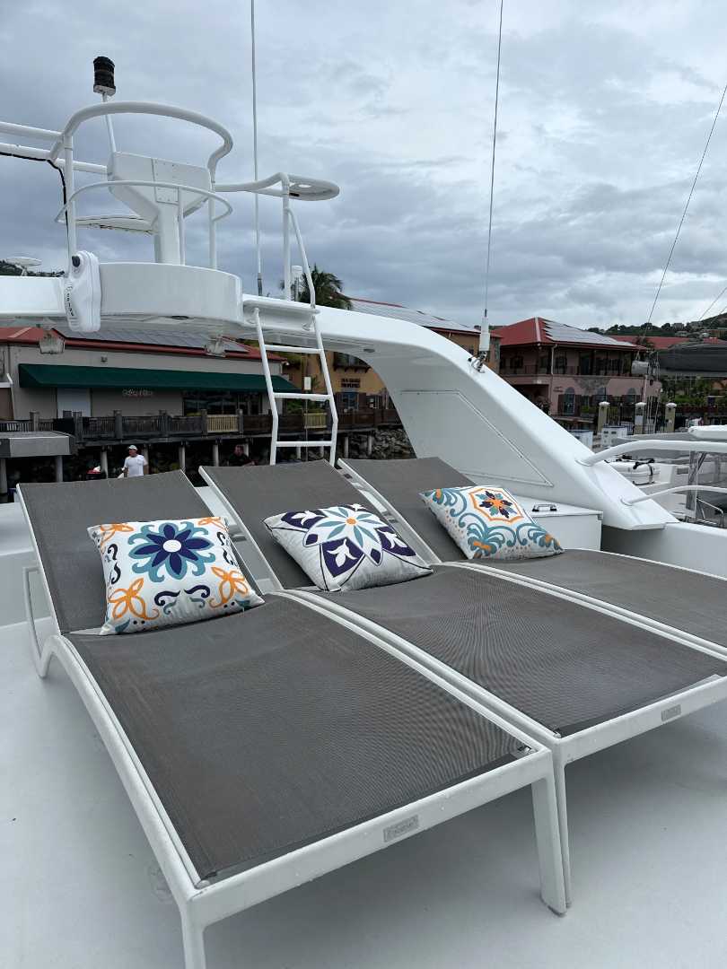 - Jacuzzi on foredeck with sunpad lounging