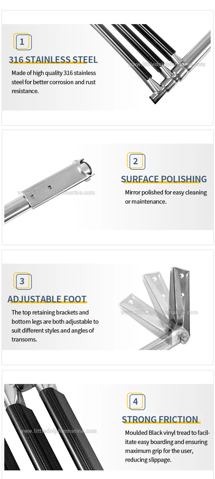 Marine Hardware Little Dolphin Outdoor Products Boat Swim Platform With Ladder 316 Inflatable Boat Ladder Stainless Steel Boat Boarding Ladder Yacht Yacht