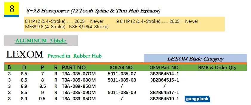 Outboard Engine Aluminum Alloy Propeller for Tohatsu 8-9.8HP 8.5X7 8.5X8 8.9X8.5 8.5X9 8.9X9.5 12 Tooth/Spline