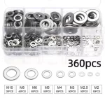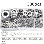 360/580pcs 304 Stainless Steel Flat Washers Set, Perfect For Home Decor, Factory Repair, Kitchens, Shops & More