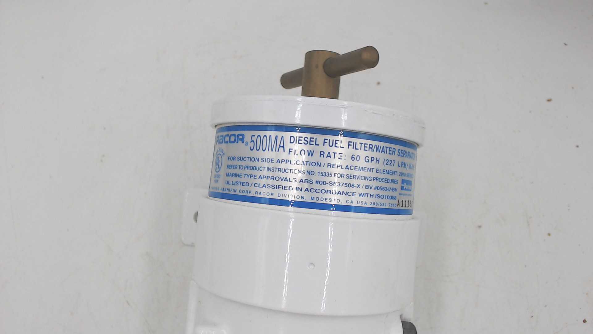 The Racor fuel filter/water separator is a high-performance filtration system designed to remove contaminants and water from fuel, ensuring clean fuel delivery to engines. Featuring a dual-filtration process, it first captures solid particles before separating and draining water to prevent engine damage and enhance performance. The unit is typically equipped with a clear bowl for easy monitoring of water accumulation and a built-in primer for hassle-free operation. Ideal for marine, automotive, and industrial applications, the Racor filter/water separator helps improve fuel efficiency and prolongs engine life.