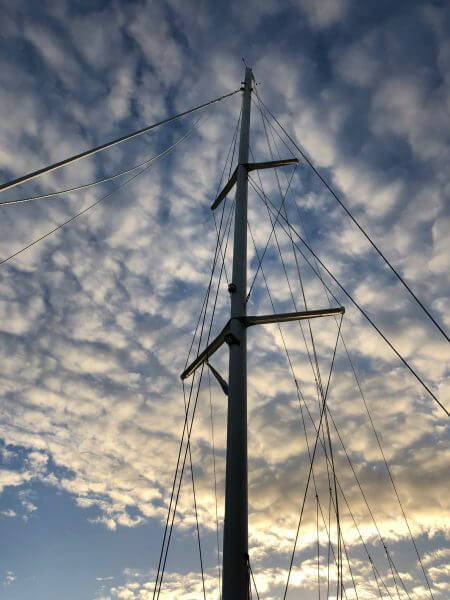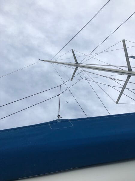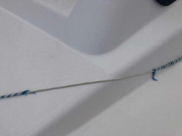 The jib halyard line is torn.