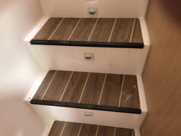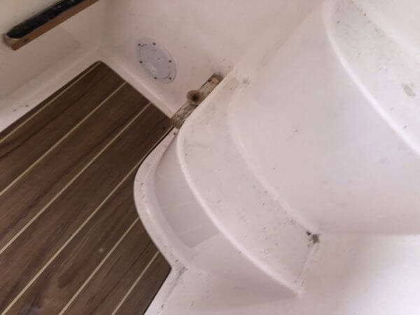Pool water in the cockpit has stained the decking when the vessel was listed to its side.