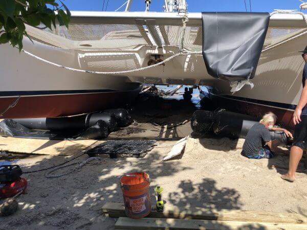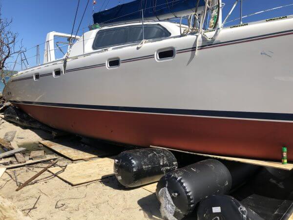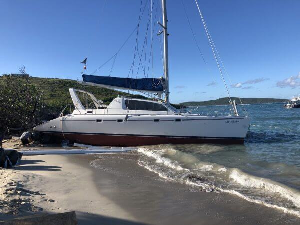 Both breakaway keels are gone and removed. The vessel washed up on a beach near Green Cay St. Croix. The salvage team & (Nautical Trips and Consulting) removed rolled vessel off the beach and drove it back to St. Thomas.
