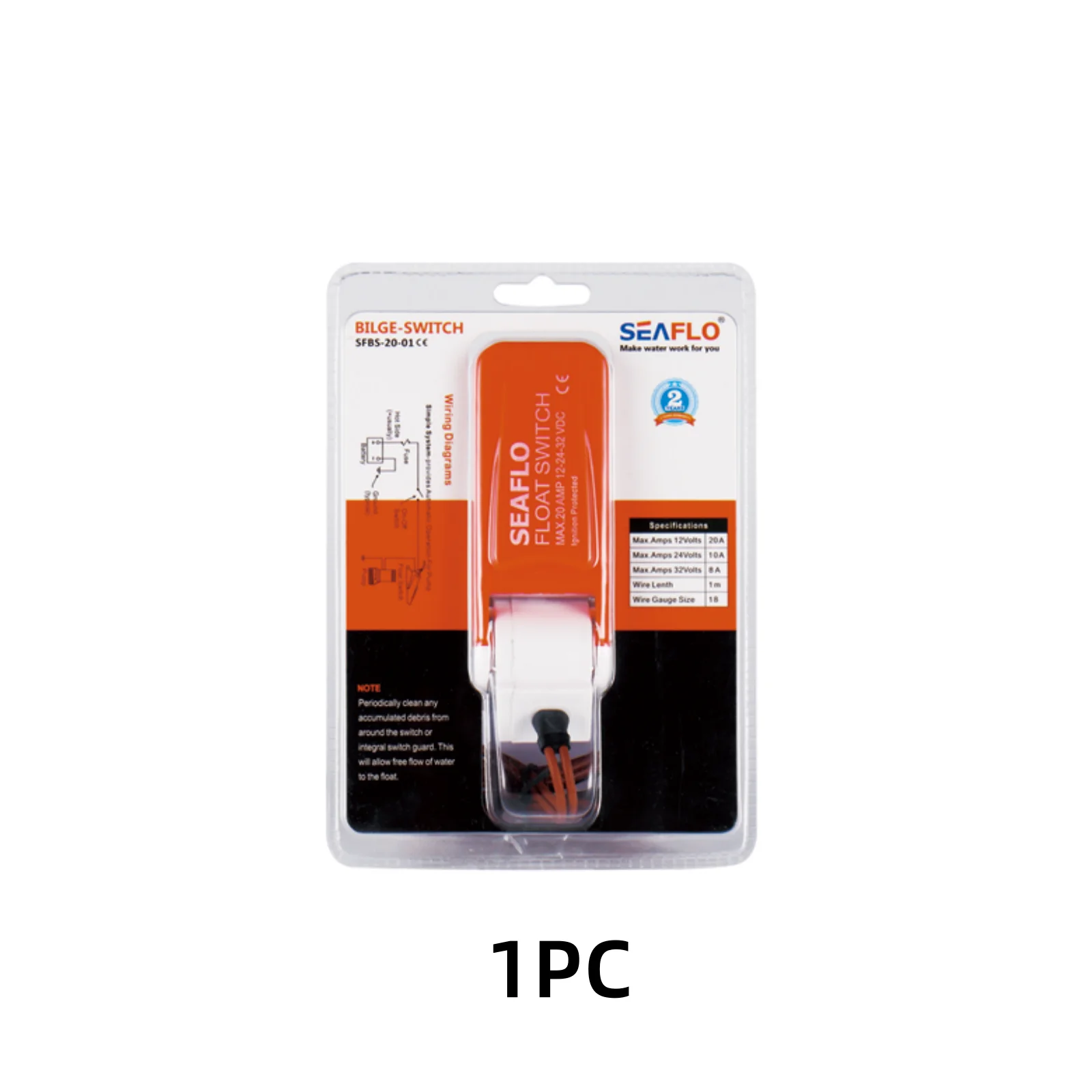SEAFLO 12-24-32-VDC Boat Bilge Pump Float Switches are the switch of choice for selective boaters all over the world. Featuring quality design and construction to offer reliable engagement of your bilge pump. For pumps drawing up to 20 amps. SEAFLO float switches are designed for use with fresh water and salt water only.