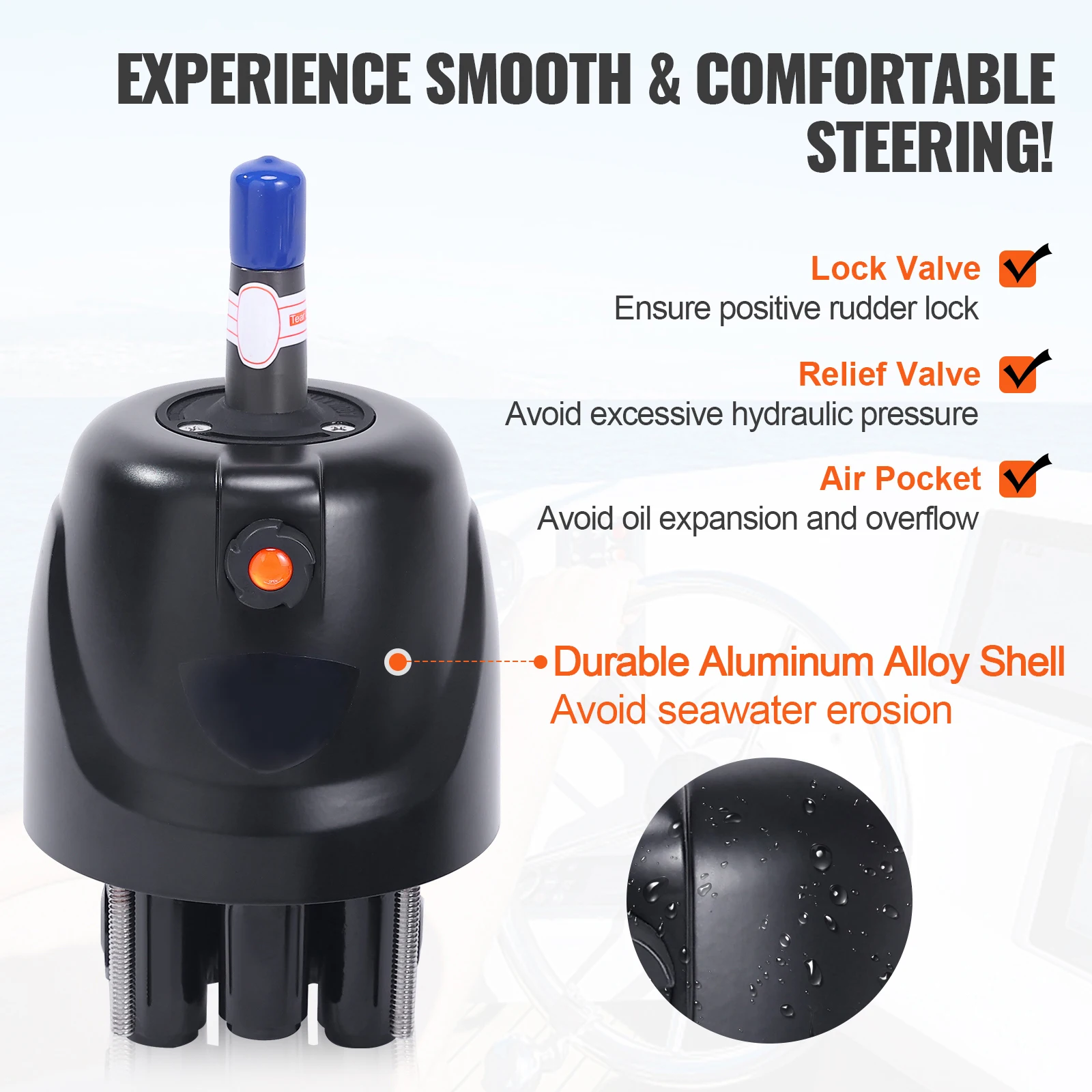 Two-Way Locking Valve: Our advanced hydraulic pump features a built-in dual-directional valve, replaceable shaft seals, a relief valve, and an air pocket. This not only enhances reliability, security, and durability but also reduces long-term operational and maintenance costs while optimizing overall system efficiency and performance. Upgrade now for peace of mind on your maritime adventures.