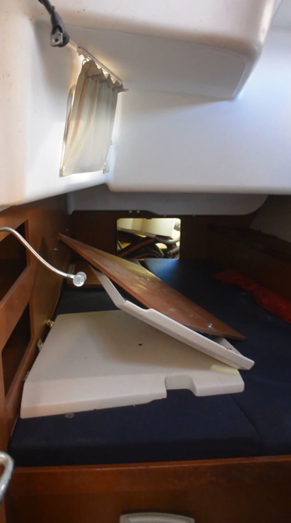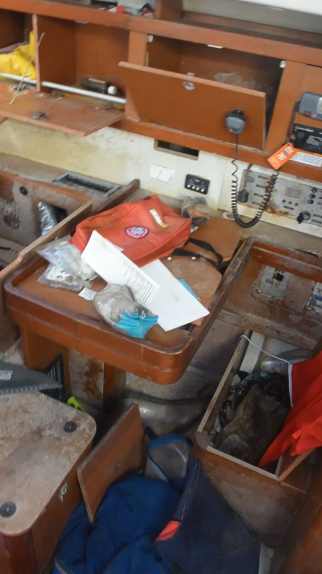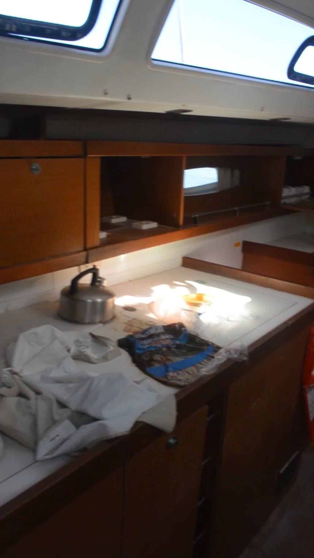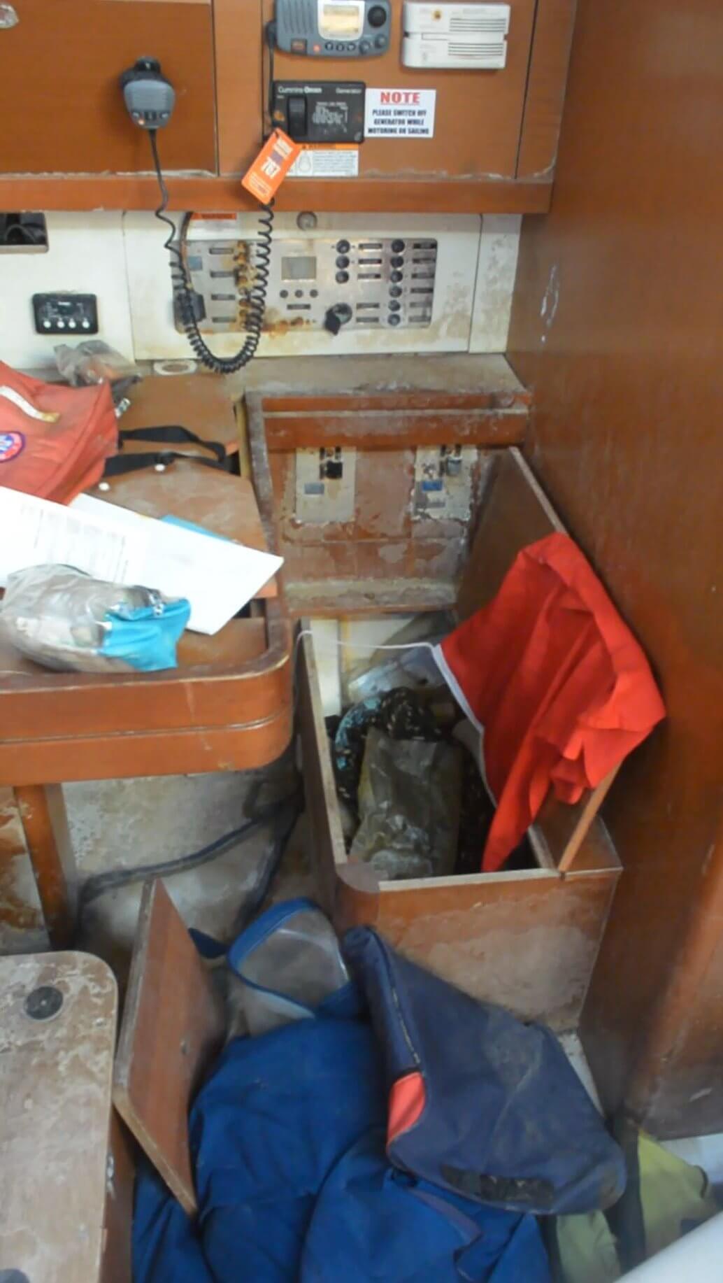 The top deck appears to be in relatively good condition, with some repairs required to railings, rigging and the like. Minor fiberglass touch ups are also required, including the stern hull. The cockpit requires some work to clean up and repair, but otherwise in fair shape.