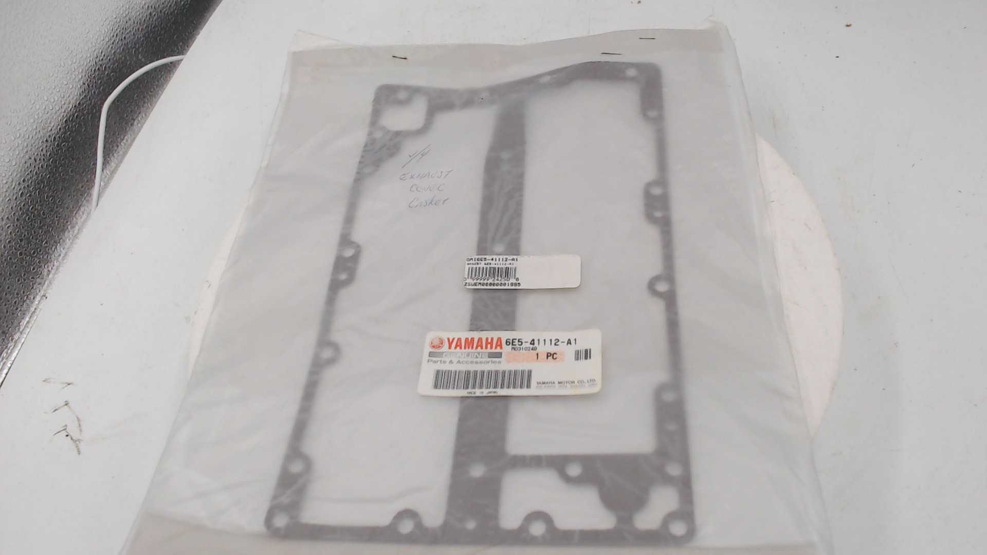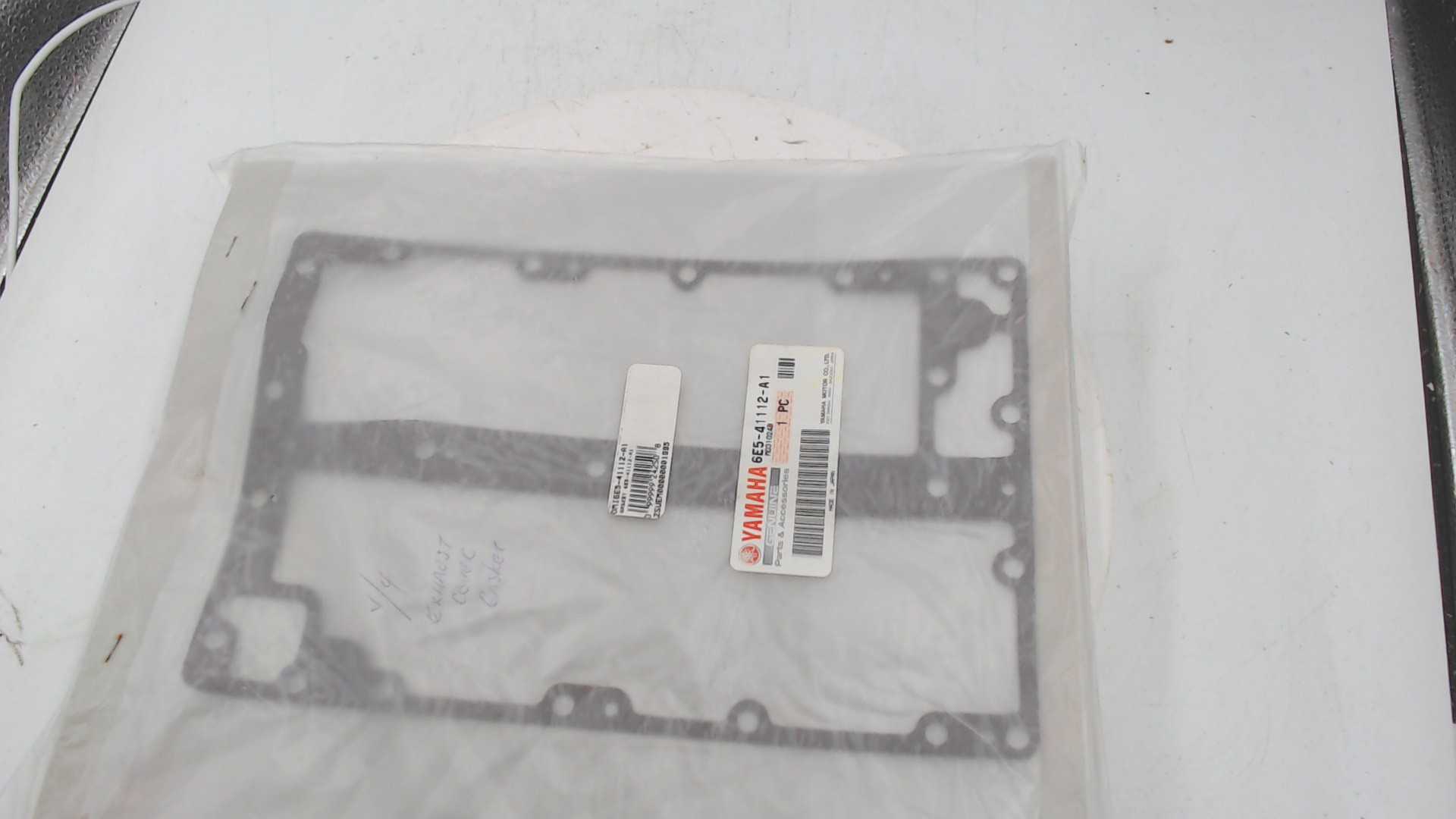 Yamaha. OEM Exhaust Cover Gasket. New/Unopened Original Pack. 4V 115-130 HP. 6E5-41112-A1/M031024B. A gasket is a mechanical seal used to fill the space between two or more mating surfaces to prevent leakage of fluids or gases. Made from various materials such as rubber, silicone, metal, or composite materials, gaskets are engineered to withstand specific pressure, temperature, and chemical conditions. They are commonly utilized in engines, pipelines, HVAC systems, and numerous industrial applications to ensure airtight and watertight seals. Proper installation and maintenance of gaskets are vital for ensuring system efficiency and longevity, reducing the risk of leaks and operational failures.